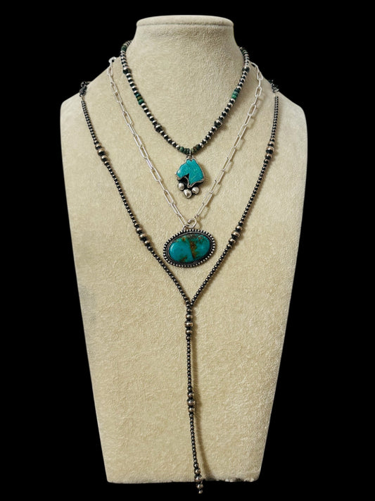 Kingman Turquoise & Bottle Cap Multi-Wear Necklace Chain 24”